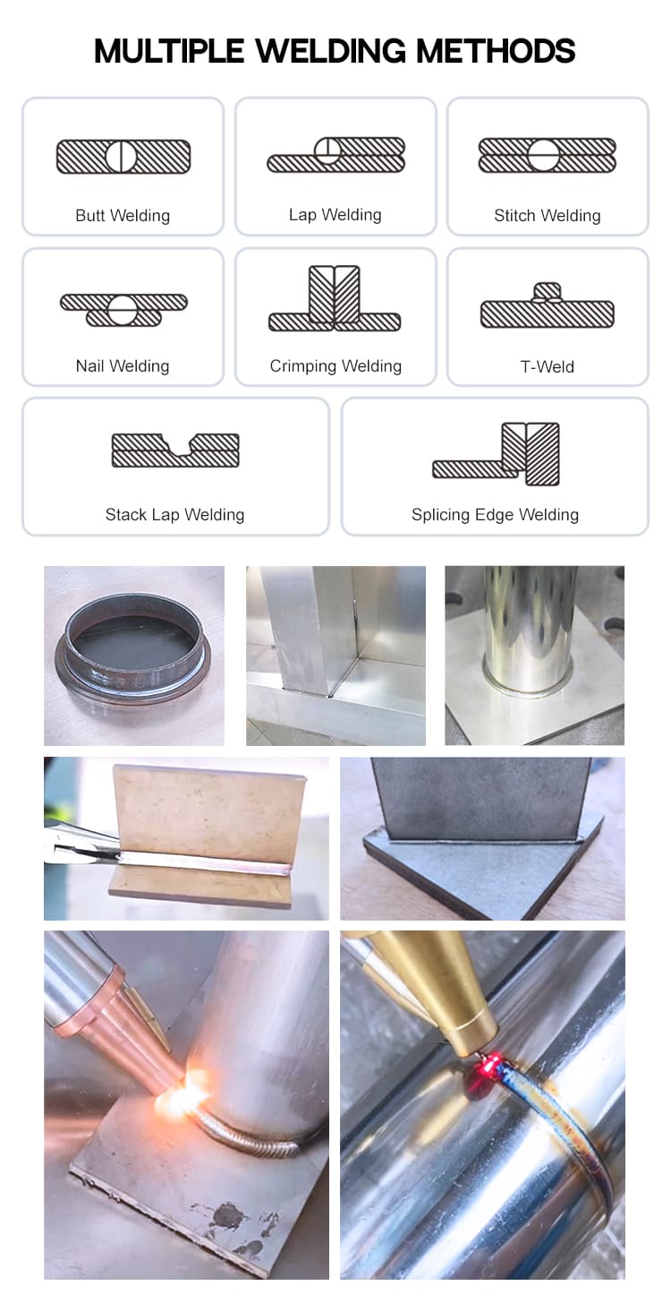 3. Біріктірілген жұмыс: Қолмен лазерлік дәнекерлеу біріктірілген жұмыс сипаттамаларына ие, қосымша кронштейндер мен жабдықты қажет етпейді, қарапайым және ыңғайлы жұмыс, әртүрлі дәнекерлеу тапсырмаларына жарамды, икемділік пен ыңғайлылықты жақсартады.